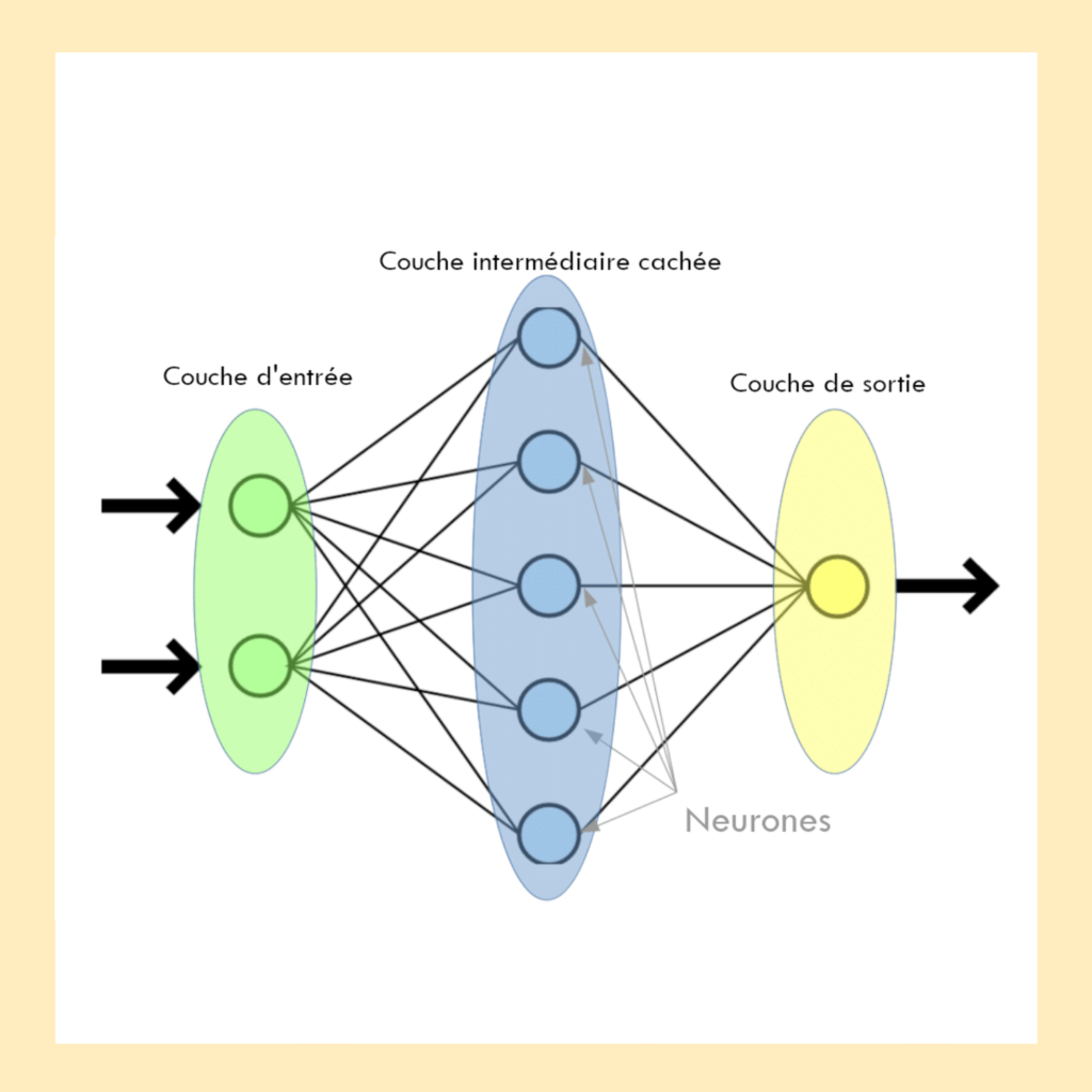 La première couche, dite « d’entrée », reçoit les données brutes ; une image, un son, du texte etc. Les couches intermédiaires, appelées « cachées », extraient progressivement des caractéristiques de plus en plus sophistiquées. Enfin, la couche de sortie produit le résultat final : « cette image représente un chat », « cet email est un spam », ou encore « ce patient présente des signes de maladie ».
